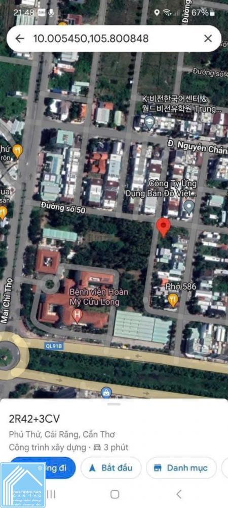 đường Nguyễn Văn Cừ, gần chợ Mỹ Khánh - ĐH Nam CT & ĐH FPT.